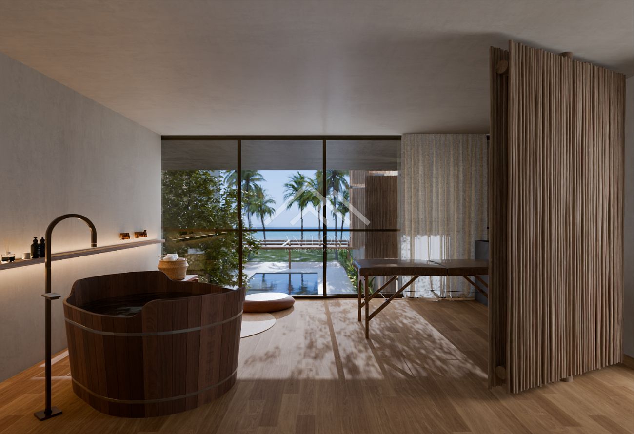 Rooftop com piscina de borda infinita, spa, bistrô exclusivo, academia panorâmica com vista para o mar, áreas de convivência sofisticadas e espaços que traduzem o equilíbrio perfeito entre modernidade e o charme natural de Milagres.